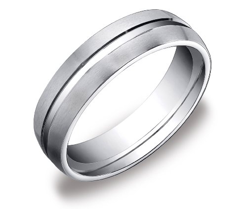 Get Special Price on Mens 10k White Gold 6mm Comfort Fit Wedding Band with Satin Finish Featuring High Polished Center Cut, Size 9.