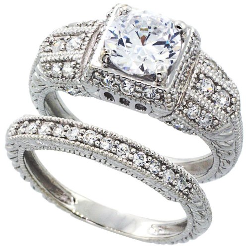 Shop online for 14K White Gold Rhodium Plated Sterling Silver Wedding & Engagement Ring Vintage Style 2Pc Engagement Ring Set For Women 9MM ( Size 6 to 9) Size 8.