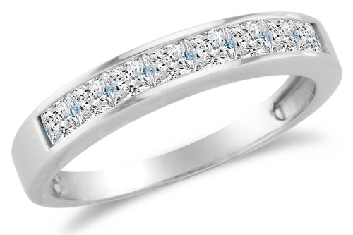 Discover Big Savings on Size 7 - 2.5mm Solid 14K White Gold Princess Cut Channel Invisible Set Highest Quality CZ Cubic Zirconia Womens Ladies Wedding Band Ring (1.0 cttw.) - Available in all ring sizes 4 - 13